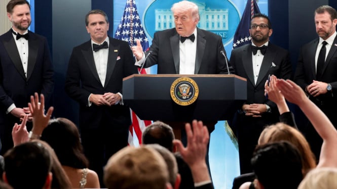 Presiden Donald Trump angkat bicara saat ditanya awak media terkait dengan kemungkinan insiden penembakan dalam acara jamuan makan malam berkaitan dengan perang Iran